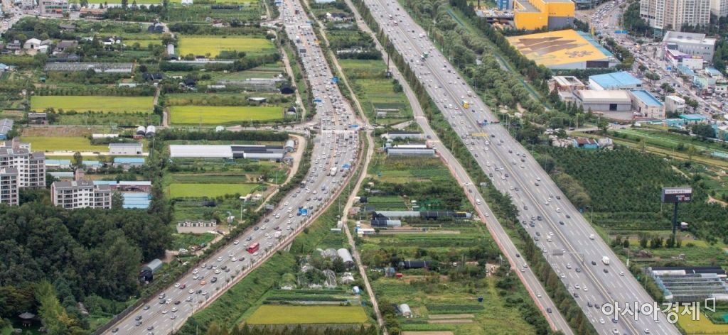 민족 최대 명절인 '추석'을 이틀 앞둔 11일 경부고속도로에 귀성길에 오른 차량이 고향으로 이동하고 있다. (항공촬영 협조 : 서울지방경찰청 항공대 이용길 경감, 경기북부지방경찰청 박형식 경위)/강진형 기자aymsdream@