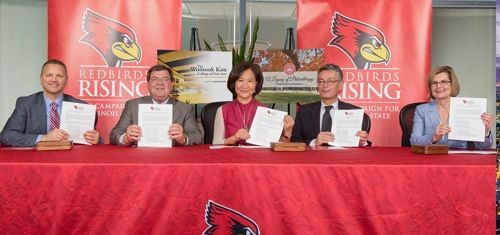 일리노이주립대학교에서 열린 기부금 약정식에 참여한 김원숙 화가(가운데)