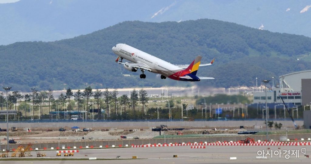 아시아나항공의 예비입찰을 하루 앞둔 2일 인천국제공항 활주로에서 아시아나항공 여객기가 이륙하고 있다. 항공업계와 투자은행에 따르면 금호산업과 매각주관사 크레디트스위스증권(CS증권)은 3일 아시아나항공 매각을 위한 예비입찰을 진행한다. 하지만 인수전 분위기는 미지근하다. 항공산업의 성장률 하락과 아시아나항공의 재무구조 악화가 가장 큰 걸림돌이다./영종도=김현민 기자 kimhyun81@
