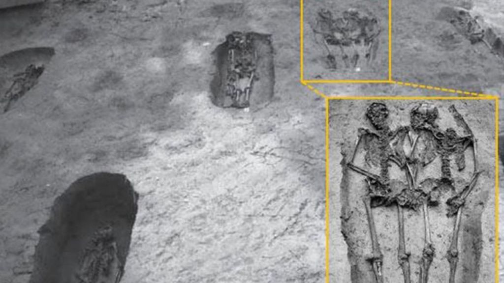 사진은 '모네다의 연인'으로 알려진 한 쌍의 고대 해골/사진=영국 매체 'skynews' 캡처