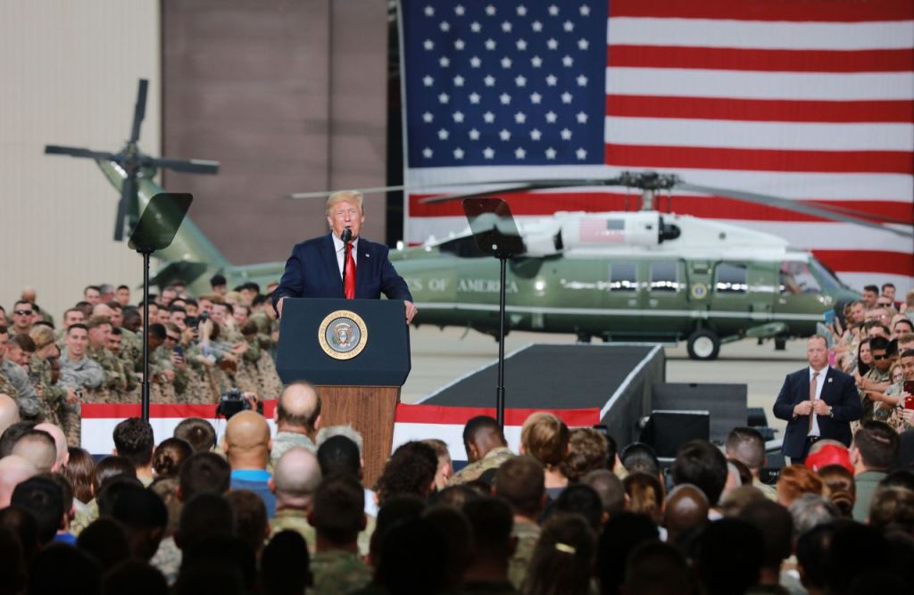 도널드 트럼프 미국 대통령이 지난 6월30일 오후 경기도 평택시 주한미군 오산공군기지에서 열린 장병 격려 행사에서 연설하고 있다. (사진=연합뉴스)
