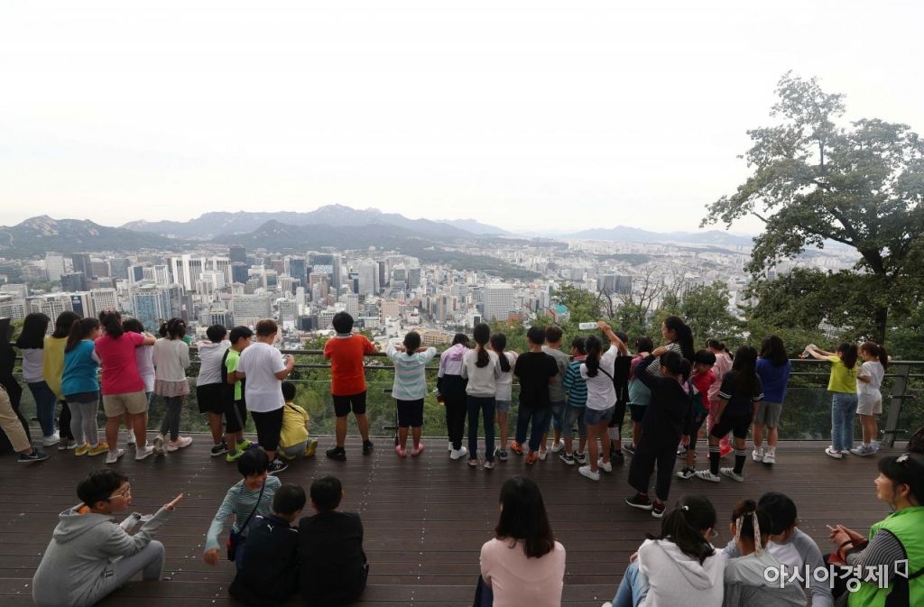 20일 서울 남산을 찾은 관광객들이 흐린 하늘 아래 즐거운 시간을 보내고 있다. 기상청은 주말부터 월요일 낮까지 전국이 태풍의 영향권에 들면서 강한 비바람이 불 것으로 예상했다. /문호남 기자 munonam@