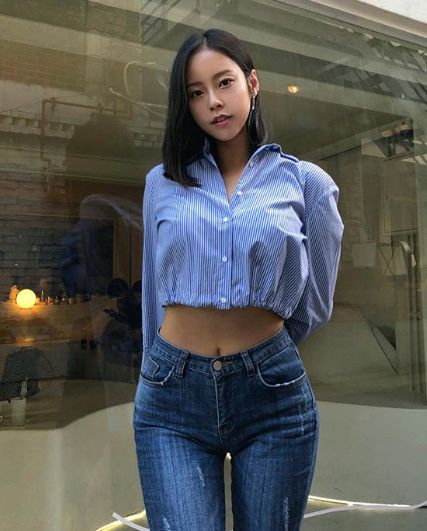 최근 김주희는 자신의 인스타그램에 사진을 게재했다. 사진 속 김주희는 스트라이프 셔츠와 청바지를 입었다. 잘록한 허리가 눈에 띈다.