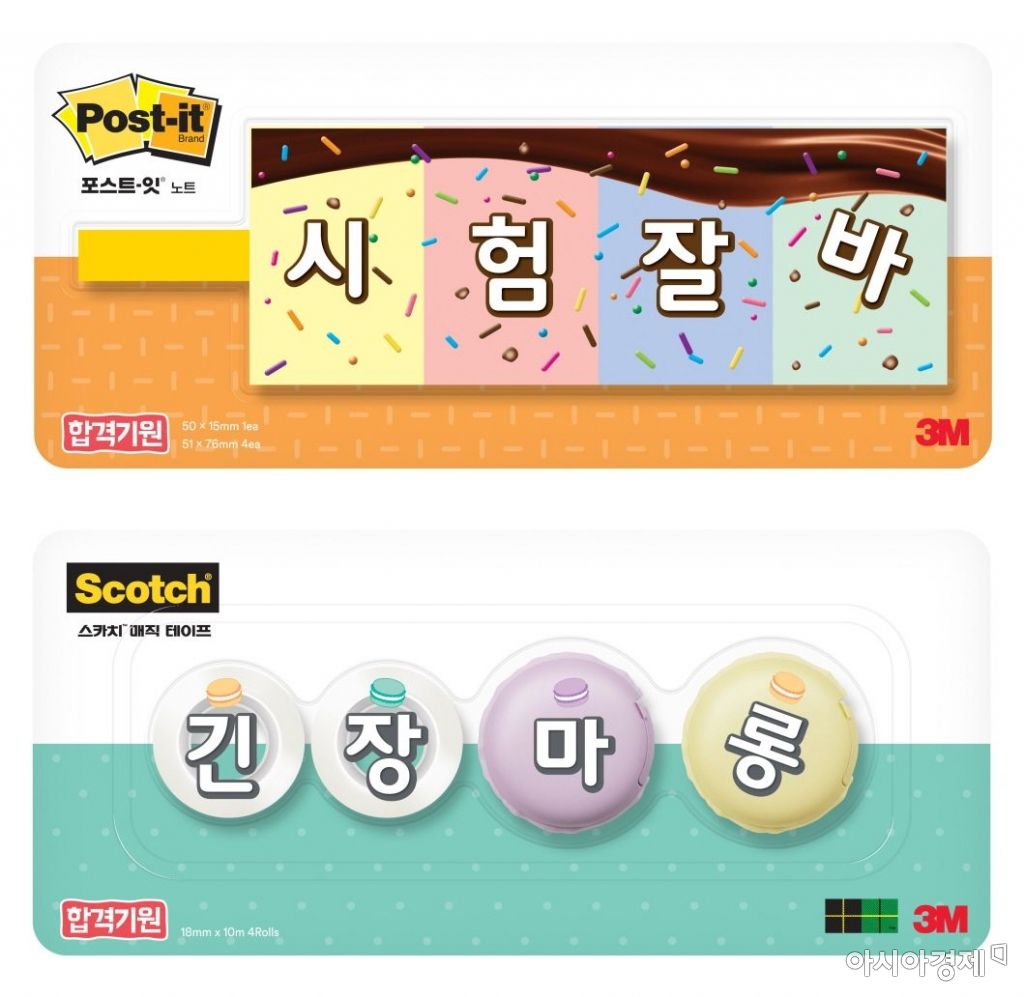 수능팩은 학습 시 유용하게 사용할 수 있는 포스트-잇 노트와 스카치 매직 테이프 제품들로 구성됐다. 아이스크림과 마카롱을 모티브로 한 디자인에 합격 기원 문구를 새겼다. 제품 후면에는 응원의 메시지를 적을 수 있어 수험생을 위한 선물로 제격이다.