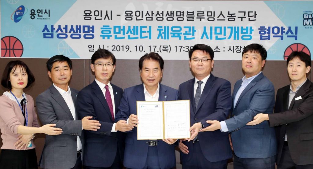 용인시는 앞서 17일 시장실에서 삼성생명과 기흥구 보정동 삼성휴먼센터 체육관의 농구코트를 시민에게 2년간 무료 개방하는 내용의 협약을 체결했다.