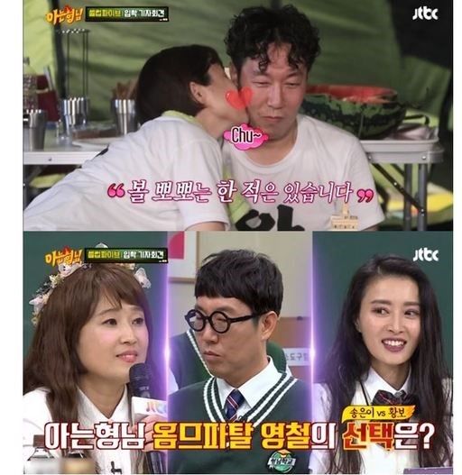 송은이는 "전략적인 혼인이었다"며 "볼 뽀뽀까지 했는데 프로그램이 폐지돼 헤어졌다"고 답했다.