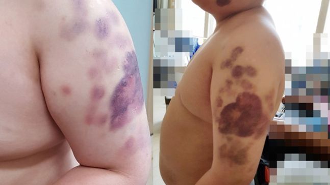 중학교 또래 친구들에게 맞은 A군의 몸에 생긴 멍 자국. 사진=연합뉴스