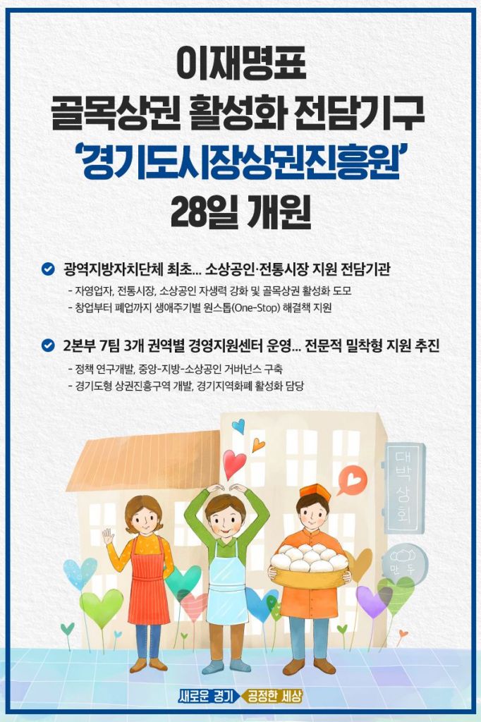 또 상권전체의 자체역량을 강화할 '경기도형 상권진흥구역' 개발ㆍ보급을 추진한다. 아울러 31개 시ㆍ군의 '경기지역화폐' 활성화를 위한 홍보ㆍ유통 확대와 가맹점 통합관리를 수행하는 허브 역할도 담당한다.