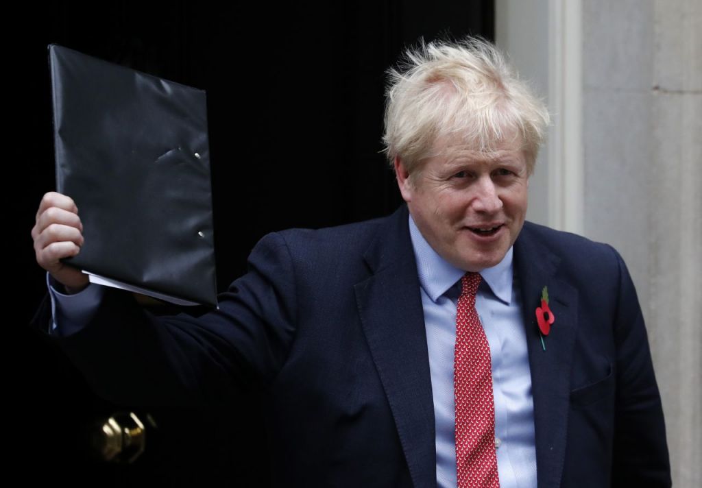 보리스 존슨 영국 총리가 29일(현지시간) 하원의 조기총선 개최 표결을 앞두고 런던 다우닝가 10번가를 나서고 있다. 그는 이날 표결 승리를 위해 지난달 당론에 반한 투표를 했다는 이유로 출당시켰던 보수당 의원 21명 중 10명을 복귀시켰다. 오는 12월12일 조기총선 개최를 뼈대로 한 존슨 내각의 단축법안은 찬성 438표, 반대 20표로 가결됐다. [이미지출처=AP연합뉴스]