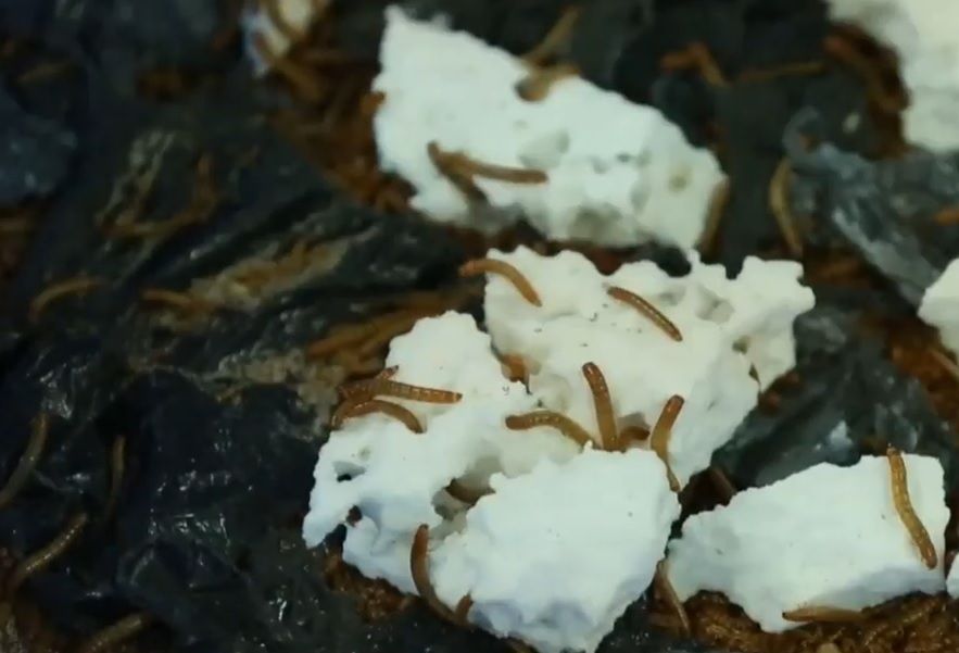 스티로폼을 먹는 밀웜의 모습. [사진=유튜브 화면캡처]