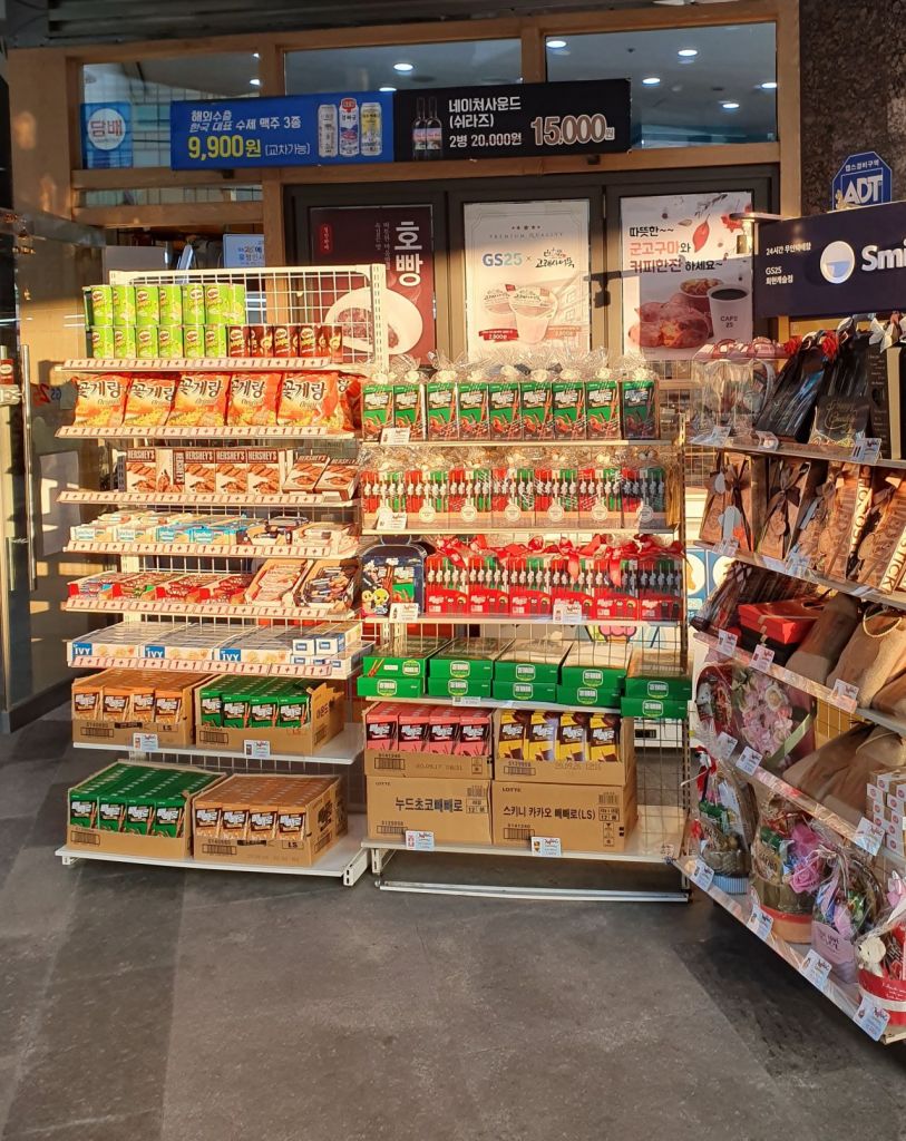 같은 시각, 명동역 인근에 위치한 CU 편의점은 매대를 앞에 내세우지는 않았지만 1+1 '블랙위크' 행사와 함께 빼빼로데이 할인 프로모션을 진행한다는 시각물이 전면 유리벽 앞에 붙어 있었다. 이달 10일까지 BC카드로 빼빼로 5개를 구매하면 3000원 할인 혜택을 준다는 내용이었다. 매장 안에는 빼빼로 12갑을 묶어 빨강ㆍ노랑색 에코백 안에 넣은 묶음상품 매대가 별도로 설치돼 있었다.