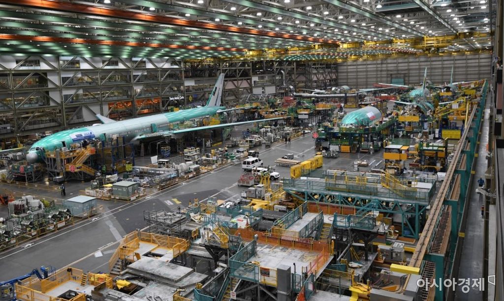 6일(현지시간) 미국 워싱턴주 에버렛 보잉 팩토리에서 777기종이 생산라인에서 조립되고 있다./에버렛(미국)=김현민 기자 kimhyun81@