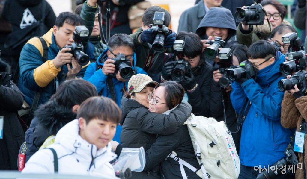 2020년도 대학수학능력시험일인 14일 서울 중구 이화여자외국어고등학교에 마련된 시험장 앞에서 한 수험생이 어머니와 포옹하고 있다./강진형 기자aymsdream@
