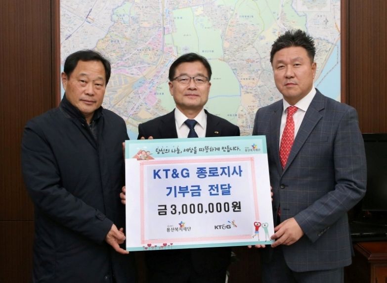 승만호 이사장은 "선행을 실천하고 있는 KT&G 종로지사 측에 감사드린다"며 "기부받은 돈은 복지사각지대 위기가구 발굴, 지원에 활용할 것"이라며 말했다. 용산복지재단(2074-9191)