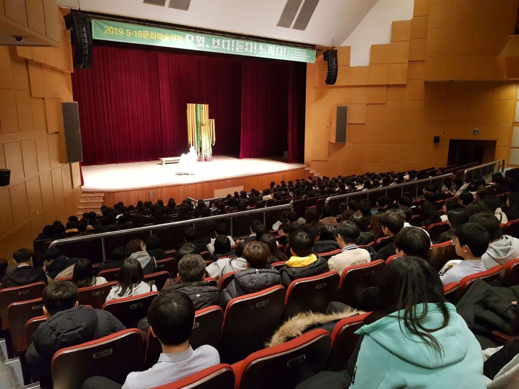 시교육청은 공연 지원 첫날인 지난 21일 5·18기념문화센터 민주홀에서 상무고등학교 학생 300명을 초청해 놀이패 신명의 ‘언젠가 봄날에’를 선보이기도 했다.