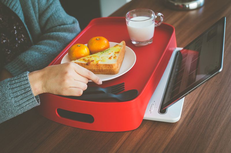 제품명처럼 앞뒤 가장자리의 높이를 다르게 해 책상, 침대, 바닥 등 용도에 맞게 양면으로 사용할 수 있도록 디자인됐다. 손잡이 깊이가 깊은 부분은 식기들을 안정적으로 고정할 수 있어 바닥이 고르지 않은 곳에서도 안전하게 사용할 수 있으며 손잡이가 얕은 부분은 장애물이 많은 곳에서 사용하기 용이하다는 게 디자인진흥원 측 설명이다.