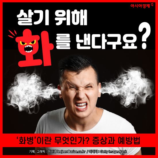 [아시아경제 이진경 기자] ‘화병 났다’는 말, 한국인이라면 들어본 이야긴데요. 화병은 실제로 미국정신의학회에서 ‘hwa-byung’이라는 명칭으로 공인된 정신질환이라고 합니다. 화병인 줄 모르고 방치하여 악화된 증상이 다른 질환으로 이어지는 경우가 많아 관심을 가지고 원인을 해소하고 치료를 하는 것이 중요합니다. 이번 기회에 화병의 원인과 증상부터 예방법까지 한 번 알아봅시다.