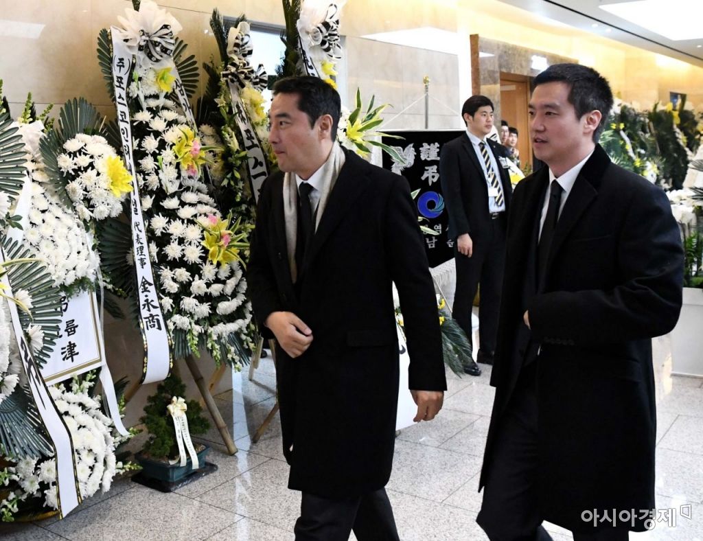 가로세로연구소 강용석 변호사(왼쪽)와 김세의 전 기자가 10일 경기도 수원시 아주대병원 장례식장에 마련된 고(故) 김우중 전 대우그룹 회장의 빈소를 찾고 있다./수원=강진형 기자aymsdream@