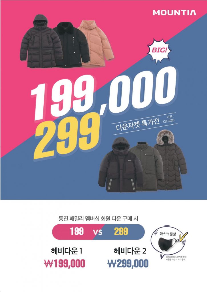 이번 특가전은 오는 31일까지 전국 마운티아 매장과 온라인몰에서 동진 패밀리 멤버십 회원을 대상으로 진행되며, 인기 헤비 다운자켓을 19만9000원 또는 29만9000원의 할인가에 선보인다.