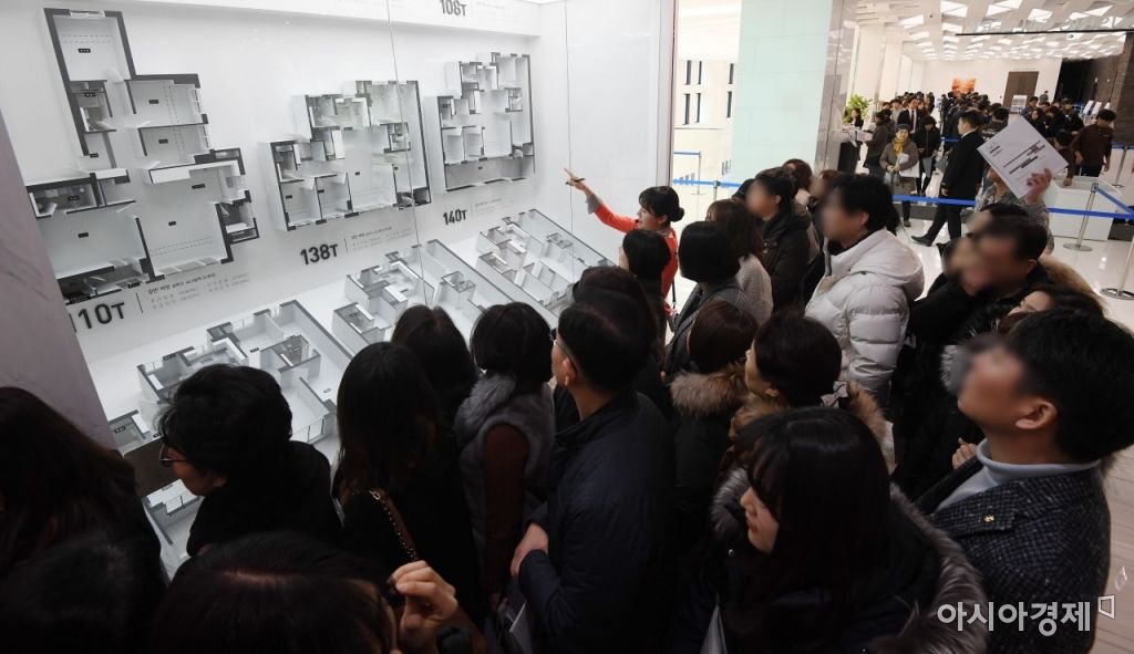 20일 서울 서초구 호반건설 사옥에 개관한 위례신도시 '호반써밋 송파' 홍보관이 방문객들로 붐비고 있다./김현민 기자 kimhyun81@