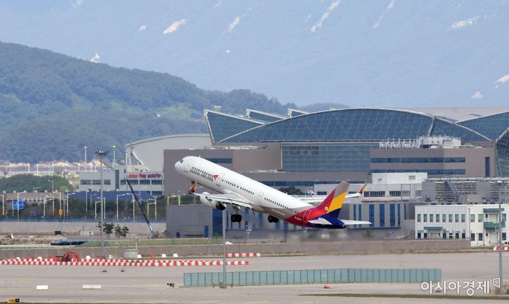 아시아나항공의 예비입찰을 하루 앞둔 2일 인천국제공항 활주로에서 아시아나항공 여객기가 이륙하고 있다. 항공업계와 투자은행에 따르면 금호산업과 매각주관사 크레디트스위스증권(CS증권)은 3일 아시아나항공 매각을 위한 예비입찰을 진행한다. 하지만 인수전 분위기는 미지근하다. 항공산업의 성장률 하락과 아시아나항공의 재무구조 악화가 가장 큰 걸림돌이다./영종도=김현민 기자 kimhyun81@