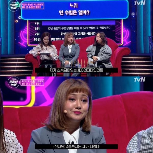 박나래는 24일 방송된 tvN '연말엔 tvN- 박나래쇼'(박나래쇼)에서 연봉을 궁금해하는 홍현희에게 "제가 소속되어 있는 JDB엔터테인먼트가 신사옥을 지었다"고 말했다.