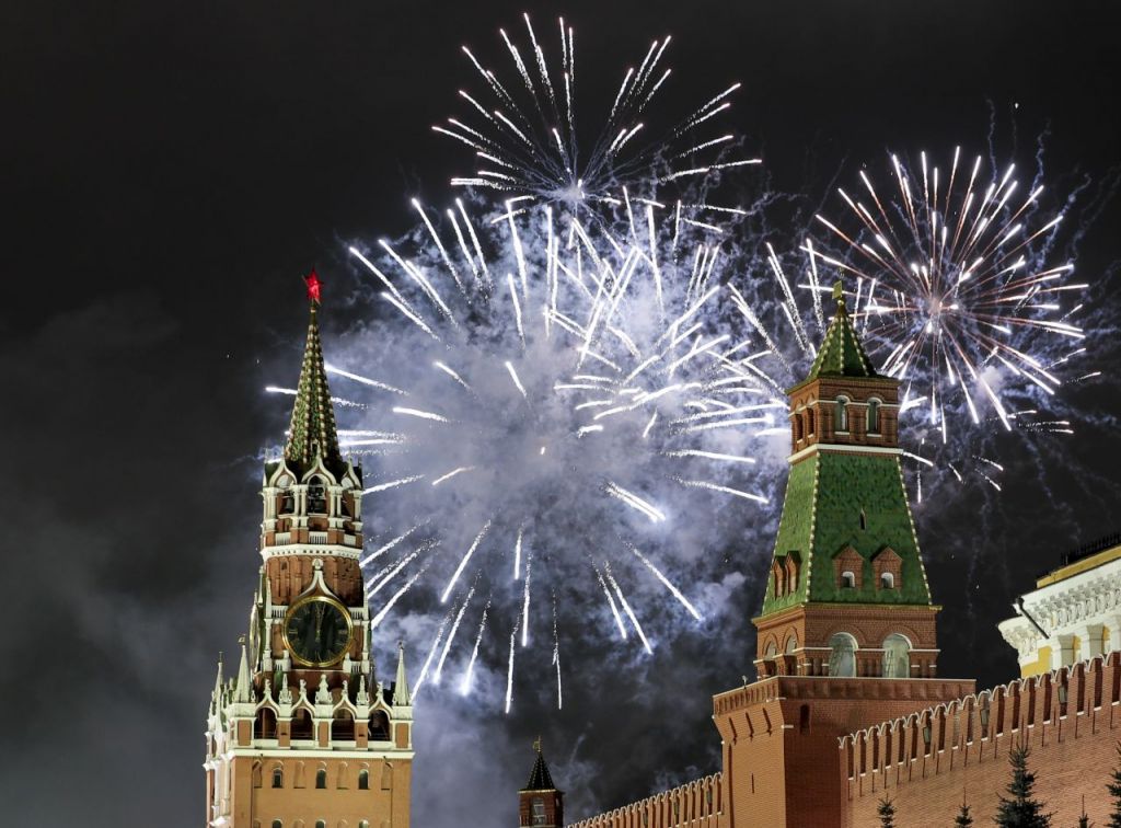 ▲2020년 1월 1일 러시아 모스크바에서 열린 붉은 광장에서 스파스카야 타워가 있는 새해맞이 행사 도중 불꽃놀이가 크렘린 상공에서 폭발하고 있다. [이미지출처=AP연합뉴스]