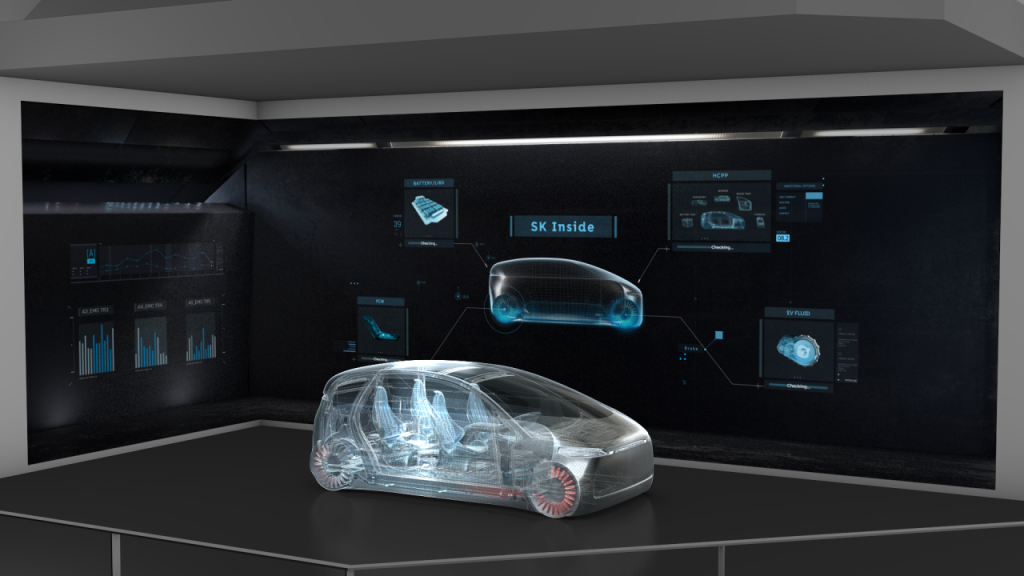 'SK 인사이드'는 SK이노베이션과 SK종합화학, SK루브리컨츠, SK아이이테크놀로지 등 자회사가 미래 전기차 혁신을 위해 필요한 최첨단 배터리, 초경량·친환경 소재, 각종 윤활유 제품 등을 패키지로 묶어 구체화한 비전 모델이다.