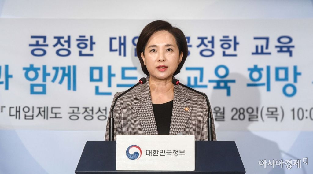 유은혜 사회부총리 겸 교육부 장관이 28일 서울 종로구 정부서울청사에서 '대입제도 공정성 강화 방안'을 발표하고 있다./강진형 기자aymsdream@