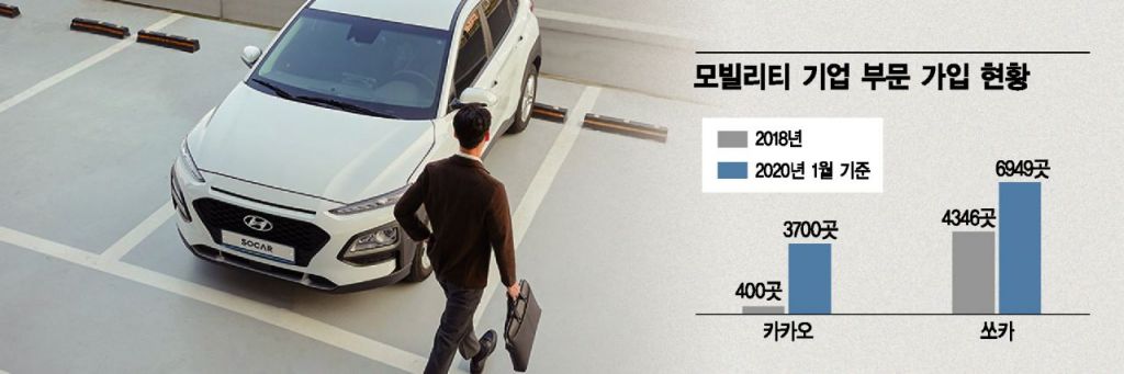 쏘카의 경우 업무상 장거리 이동이 잦은 지방자치단체와 군부대에서 인기가 높다. 해군본부는 지난해 12월부터 군무원들의 업무에 쏘카를 이용하고 있다. 호응이 좋아 올해부터는 전 해군부대로 확장한다는 계획이다.