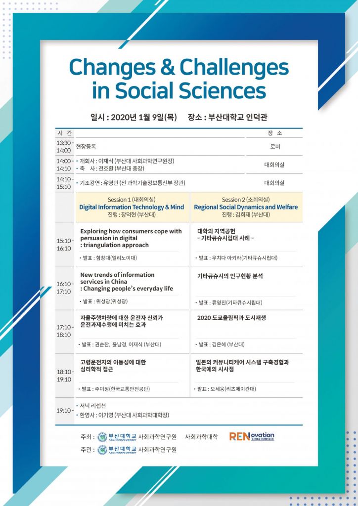 [아시아경제 영남취재본부 양희정 기자] 부산대학교 사회과학연구원(원장 이재식·심리학과 교수)은 9일 오후 2시부터 부산대 인덕관 대회의실 및 소회의실에서 ‘사회과학의 변화와 도전 (Changes&Challenges in Social Sciences)’을 주제로 국제학술대회를 개최한다고 8일 밝혔다.