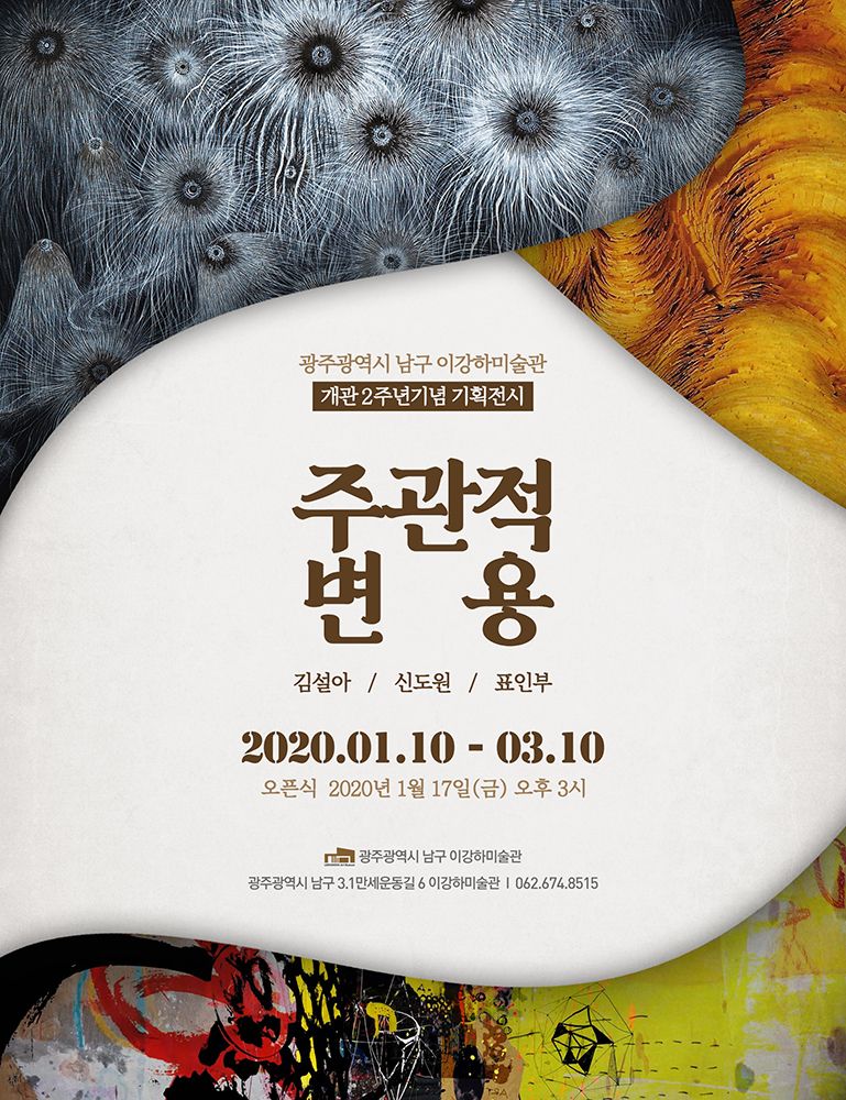 [아시아경제 호남취재본부 윤자민 기자] 광주광역시 남구 이강하미술관은 오는 10일부터 3월 10일까지 올해 첫 번째, 개관 2주년 기념기획전시 ‘주관적 변용’을 개최한다고 9일 밝혔다.