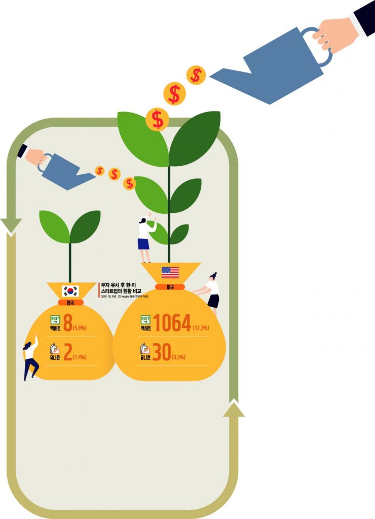 국내 벤처투자금액이 역대 최고치를 경신했고 국내에서 탄생한 유니콘 기업의 숫자는 11개로 늘어났다. 스타트업 투자와 관련한 양적 지표는 개선되고 있지만 질적 성장 지표의 발전은 더디다. 정부가 벤처투자 활성화를 앞세워 투자금은 풍부하지만 투자나 지원이 초기 기업 투자에 몰려 스타트업들이 죽음의 계곡을 넘어 유니콘으로 성장하는 '스케일업' 과정은 여전히 가시밭길이다.