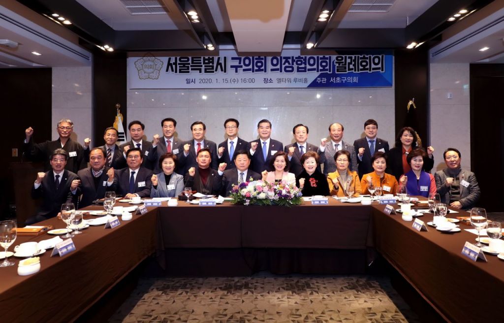 이날 월례회의에는 서초구의회를 비롯한 23개 구의회 의장이 참석한 가운데 서초구의회 의장단 소개, 축사, 의정대상 수여, 홍보영상 시청, 안건 토의 순으로 진행됐다.