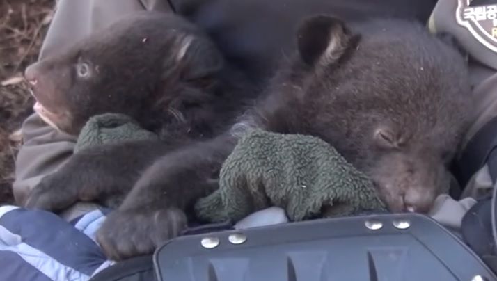 겨울잠을 자고 있는 지리산반달가슴곰의 새끼들입니다. 겨울잠을 잘 때 찾아가 건강을 체크해준다고 합니다. [사진=유튜브 화면캡처]
