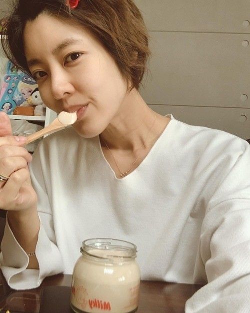이윤지는 21일 자신의 인스타그램을 통해 "눈곱과 함께 아이 등원시키고 운동가기 전 라디오 들으며 아침요거트"라는 글과 함께 한 장의 사진을 게재했다.