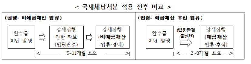 예금이 압류된 수행기관이 미납한 환수금을 납부하면 곧바로 압류가 해제돼 정상적으로 사용할 수 있다. 이외에도 환수금 납부를 간접적으로 강제하기 위해 채무를 자진해 이행하지 않는 불성실한 채무자를 일반에 공개하는 채무불이행자 명부 등재도 추진할 계획이다.