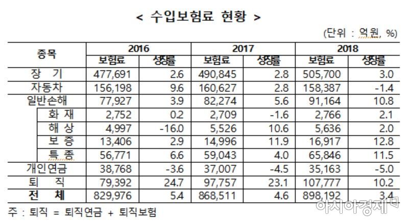 2018년 손해보험 수입보험료 현황(자료:보험개발원)