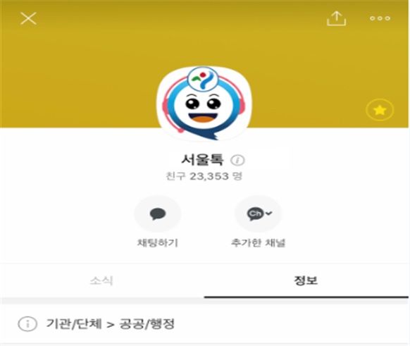 카카오톡 플러스 친구로 등록하면 누구나 이용할 수 있다. 카카오톡 친구목록 화면의 검색창에 '서울톡'을 검색, 채널을 추가하면 된다.