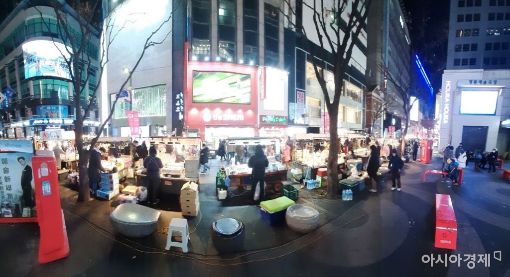 지난달 31일 오후 7시 서울 중구 명동 노점상 거리에서 만난 한 50대 상인은, 중국 우한에서 시작된 신종 코로나바이러스 감염 공포는 없냐는 질문에 이같이 답했다. 그는 "여전히 관광객들도 많다"면서 "다만 마스크를 착용하고 일해야 하니까 그것만 좀 불편하다"고 말했다.