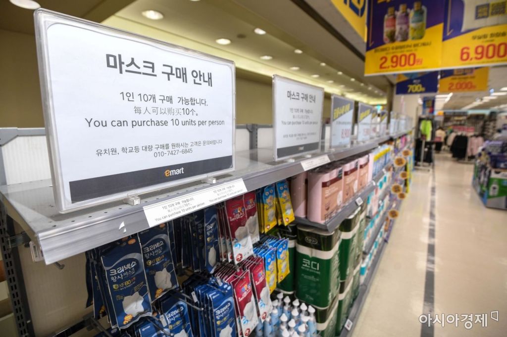 1일 유통업계에 따르면 이마트는 수요가 몰리는 일부 대형 점포에서 1인당 마스크 구매 수량을 제한하고 있다. 서울 용산점의 경우 1인당 구매 수량을 10개로 제한했고 2개로 제한한 곳도 있다. 이마트 트레이더스 매장에서는 구매 수량을 한 상자로 제한하고 있다. 롯데마트도 도심 대형 점포 등 수요가 많이 몰리는 매장 위주로 구매 수량을 제한하는 방향을 검토하고 있다.
