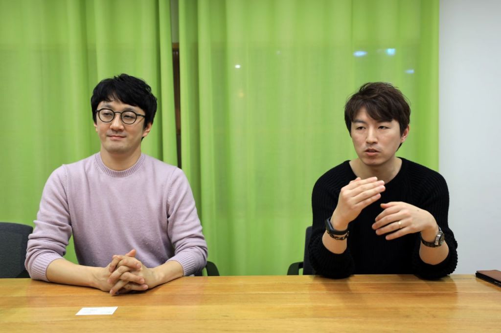 최지훈 네이버 책임리더(왼쪽)와 김진호 스마트어라운드 리더(오른쪽)가 아시아경제와 인터뷰를 하고 있다.