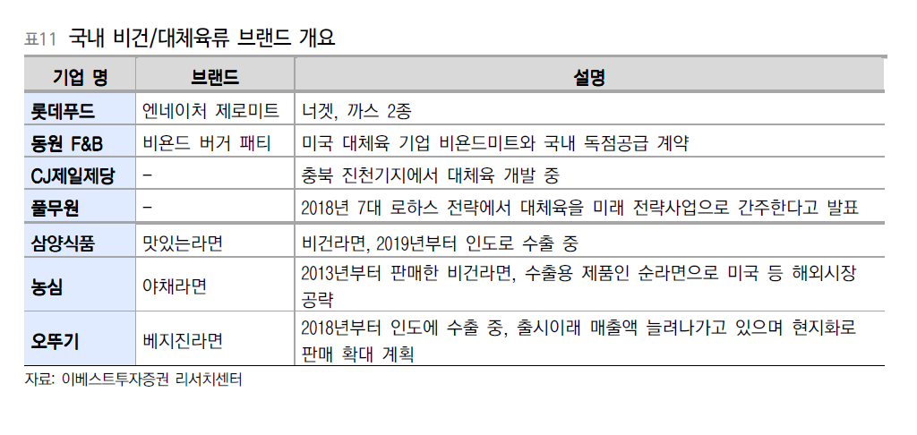 삼양식품과 오뚜기는 세계 최대 채식주의 국가인 인도 시장을 공략 중이다. 인도는 모든 식품에 베지테리안 인증 마크를 부착해야 할 정도로 채식에 엄격한 나라다. 삼양식품은 지난해 8월부터 '맛있는 라면'의 비건 제품을 인도, 뉴질랜드, 미국, 영국, 캐나다, 독일, 스위스, 호주, 네팔 등 13개 국가에 수출하기 시작했다. 젓갈을 사용하지 않은 '김치라면' 비건 제품도 함께 수출 중이다. 삼양식품은 비건 라면 생산을 위해 국내 공장에 전용 생산 라인을 구축하기도 했다. 현재까지 해외 시장에서 비건 라면으로 거둔 매출은 5억원 수준이다. 향후 삼양라면, 불닭볶음면, 김치라면, 스리라차볶음면 등으로도 비건 라인을 확대한다는 방침이다.