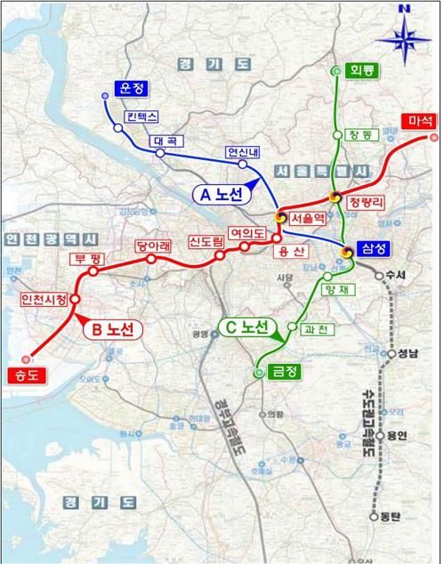 18일 업계에 따르면 경기 파주 운정지구에서 서울을 거쳐 화성 통탄신도시로 이어지는 GTX A노선은 최근 정부와 지방자치단체, 주민간 소송이 얽혀 사업이 답보상태인 것으로 나타났다.