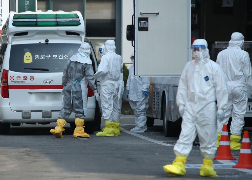 지난 20일 서울 중구 국립중앙의료원에 종로구 보건소 구급차를 타고 온 신종 코로나 바이러스 감염증(코로나19) 유증상자를의료진이 살피고 있다. [사진=연합뉴스]