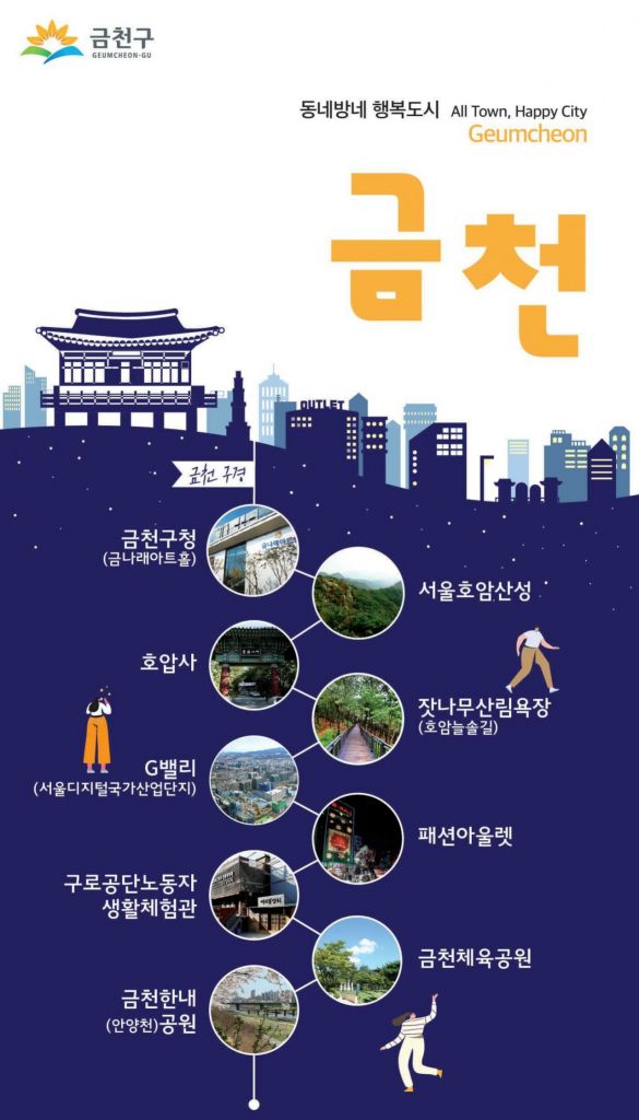 안내책자는 금천구의 역사문화시설과 관광정보를 담아 ‘역사문화’, ‘패션-IT문화’, ‘공원’, ‘전통시장’, ‘체험공간’ 등 5개 테마로 구성, 안내자 없이도 탐방객들이 홀로 관광명소를 찾아 이해할 수 있도록 제작됐다.