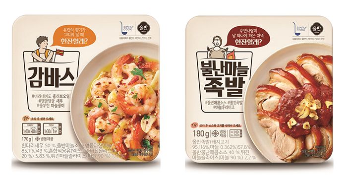 신제품 2종은 ‘올반 한잔할래 감바스’와 ’불난마늘족발’이다. ‘올반 한잔할래 감바스’는 통통한 새우의 탱글탱글한 식감과 마늘, 올리브유의 깊은 풍미가 어우러진 스페인 대표 요리 감바스를 간편식으로 구현한 제품으로 와인 안주로 제격이다. 기호에 따라 빵 또는 면을 소스에 넣어 먹으면 든든하고 근사한 한 끼 식사로도 손색이 없다.