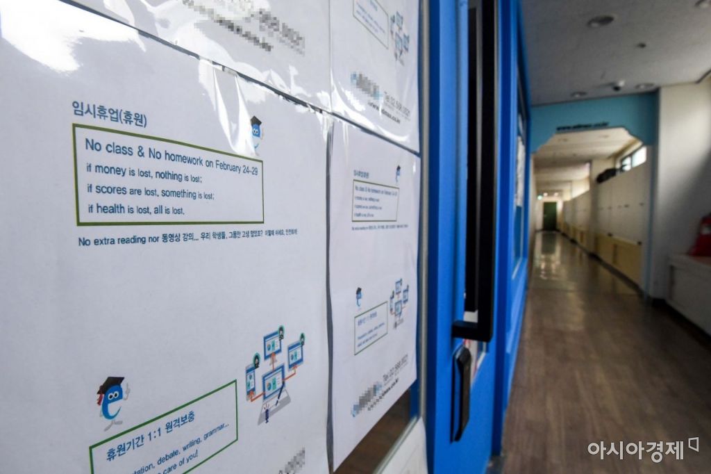 신종 코로나바이러스감염증 확산 여파로 정부가 전국 초중고 학교의 신학기 개학일을 2주일 더 연기한 가운데 3일 서울 강남구 대치동 한 학원이 휴원하고 있다./강진형 기자aymsdream@