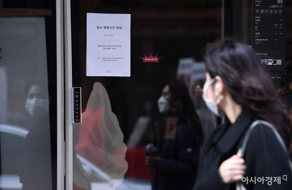 신종 코로나바이러스감염증(코로나19) 여파로 4일 서울 중구의 한 커피 전문점 매장에 임시 영업시간 단축 안내문이 붙어 있다./김현민 기자 kimhyun81@