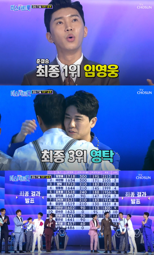 이날 준결승 1라운드 미션 결과 임영웅이 1위를 차지했다. 이어 영탁이 2위, 장민호가 3위에 자리했고, 4위는 정동원, 5위는 이찬원이었다. 김호중은 8위에 올라 결승 티켓을 가져갈 7인 안에 들지 긴장감이 더해졌다.